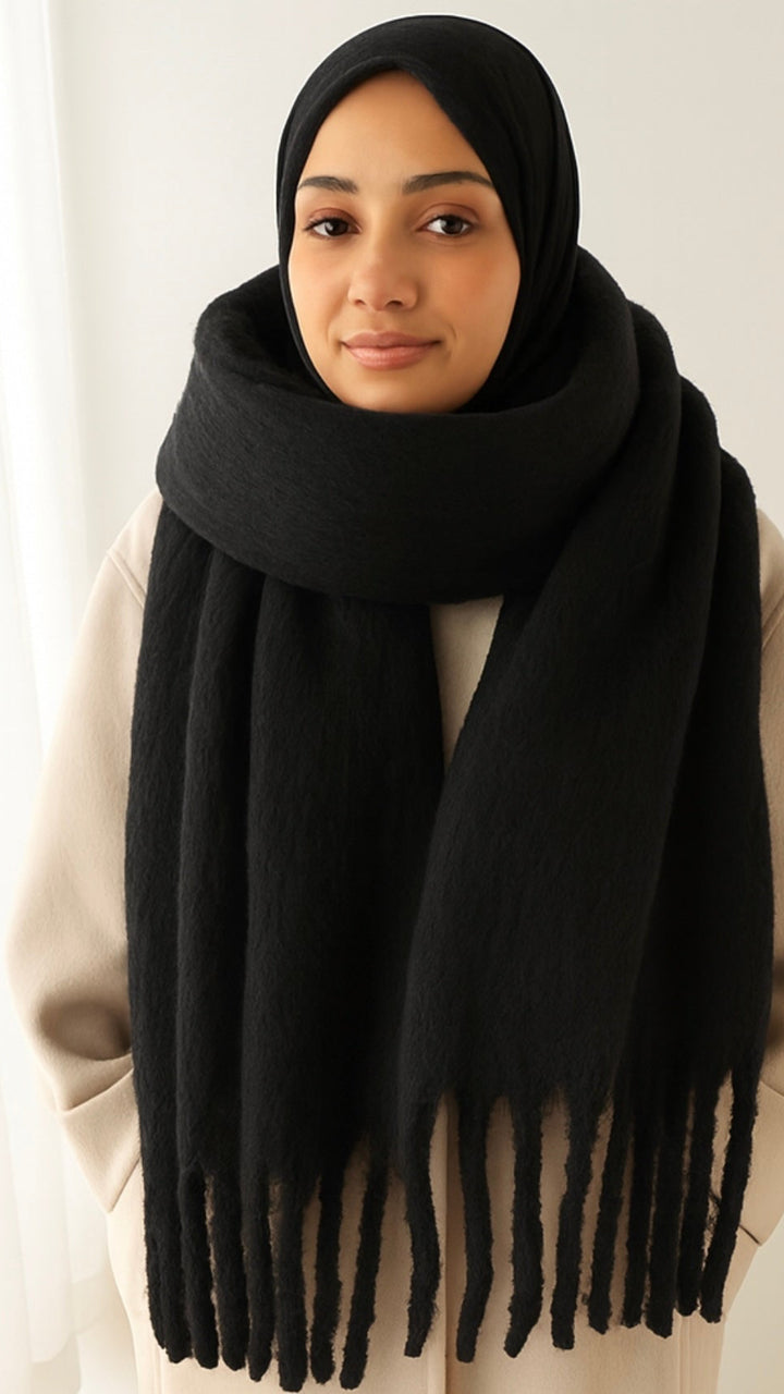 Enveloppez-vous de douceur avec cette magnifique écharpe à franges.